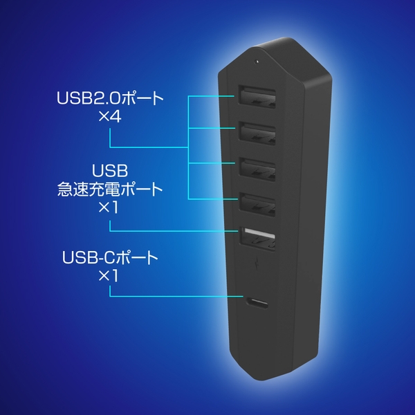 機能:USB Type-Aが5か所USB Type-Cが1か所