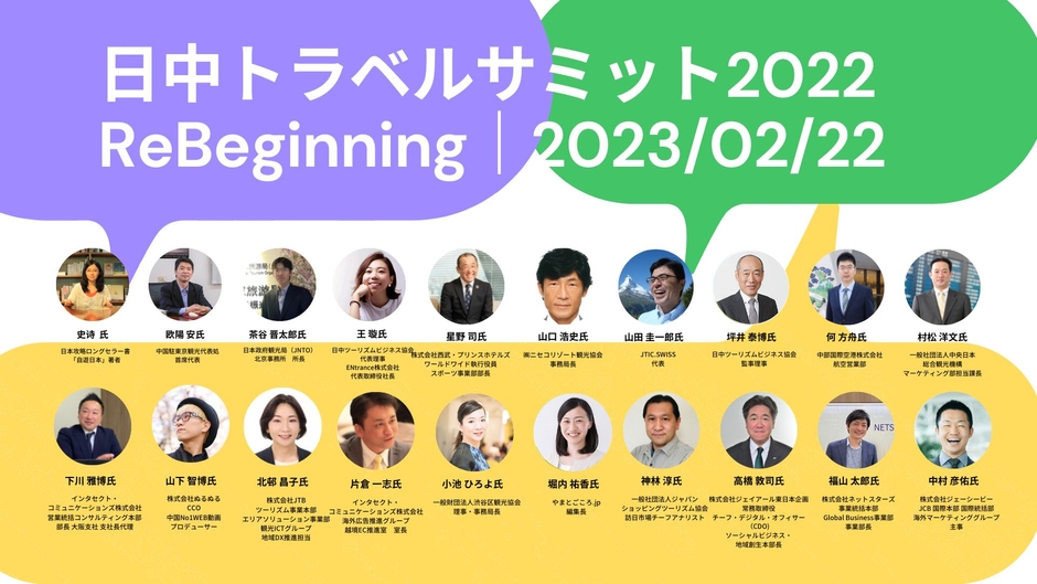 第5回「日中トラベルサミット2022」前夜祭を明日都内開催。22日中国最大級OTA「途牛Tuniu」副総裁等26名の専門家登壇のほか、中国人1万人が選ぶ魅力的日本地域の結果発表も。