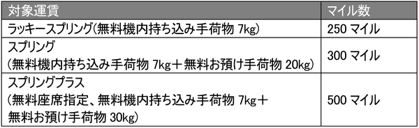 キャンペーン期間中にスプリング・ジャパン国内線にご搭乗のうえ、特設ページよりキャンペーン登録された JAL マイレージバンク(JMB)会員へ、1 回搭乗いただくごとに最大 500 マイルをプレゼントします。