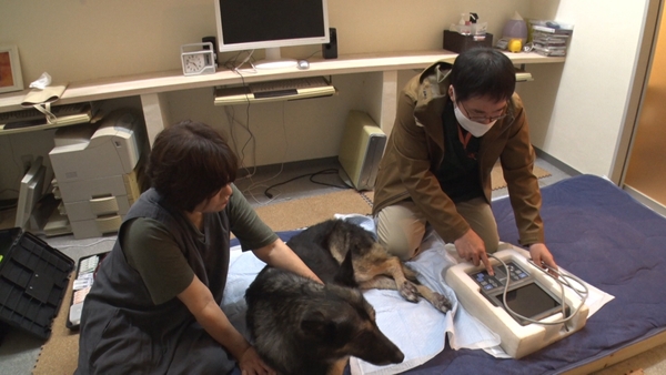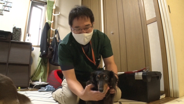次に往診に向かったのは2日前に震えが起きた14歳のシェパードのコユキ。元警察犬という超エリート犬のコユキは人間でいうと70代後半。徹底的に検査をし、膵炎の痛みを震えで訴えていたことがわかりました。診察終了と思いきや、飼い主さんからコユキの爪がのびていることを相談され、「やりましょうか」と爪を切るシーンも・・・。
