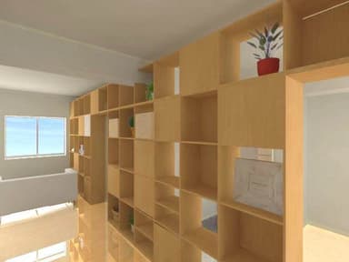 従来の間取り(45m2)から広い間取りにするために、思い切って2戸をつなげて90m2とし、子育てなど3つのライフスタイルに合わせてデザインした広々リノベーションプランです。緑豊かな環境でゆったりと子育てをしたい方や二世帯同居をしたい方におすすめです。