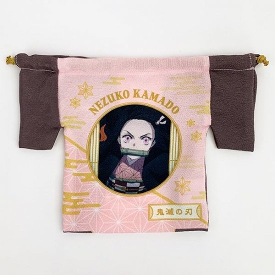 「鬼滅の刃」のヒロイン・竈門禰豆子をデザインした巾着袋もございます。ピンクの着物は、可愛らしい禰豆子のイメージにピッタリですよね♪