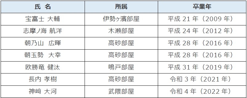 出身力士:23人(今回入門が決まった2人を含めると25人)