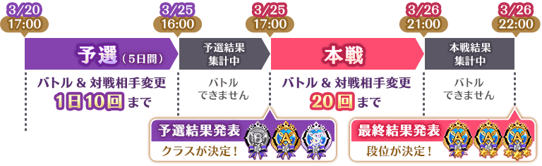 ※本戦では、「ランキングPt」を獲得しても、クラスの変動はありません。