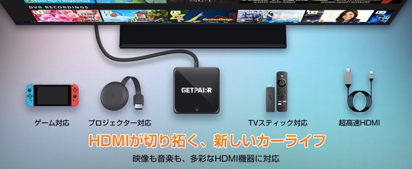 「HDMI非搭載の純正モニター」を戦力化。挿すだけでワイヤレスCarPlay/Android Autoを起動し、HDMI入力も増設する「GetPairr TV」──抜き差しも待ち時間も削って、ドライブを“途切れさせない”。