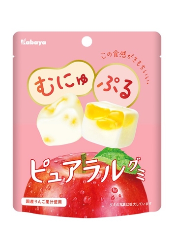 ■『ピュアラルグミ りんご』は、本物の果実をかじったようなフレッシュな香りと蜜入りりんごのような甘酸っぱい味わいです。国産りんご果汁を使用しています。