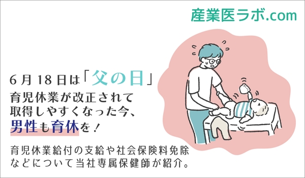 6月18日は「父の日」 育児休業が改正されて取得しやすくなった今、男性も育休を! 育児休業給付の支給や社会保険料免除などについて当社専属保健師が紹介。