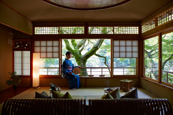 庭を中心として設計された25室の客室全てが大堰川に面しているので、窓をあけると渓谷を流れるさわやかな風を感じることができます。和室には、かつて日本人が正座の低い目線から眺めた窓の景色を足を崩して楽しめるよう開発した星のや京都オリジナルの「畳ソファ」があり、開放感ある渓谷の景色をくつろぎながら眺めることができます。プライベートな空間でゆっくりと家族水入らずの時間が過ごせます。