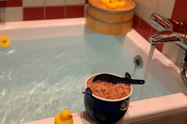 22:00 「ぽかぽかビュッフェ」からお気に入りのバスソルトを選んでバスタイム