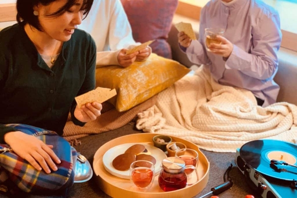 滞在中は、おかわり自由なコーヒーのポットサービス*を利用できます。出来立てのコーヒーの香りが、よりカフェ気分を盛り上げます。お部屋には、地元の老舗和菓子屋「千成もなか」の和スイーツをご用意。餡子の優しい甘さは、コーヒーともハーブティーとも相性ばっちりです。また、フロントでレコードプレーヤーとレコードを借りて、お部屋にBGMをプラスすることも可能です。まるでカフェのような居心地のよい客室で、温かい飲み物や甘いスイーツを片手に、気心の知れた友人や家族との時間を楽しめます。さらにボードゲームやカードゲームで遊べば、ぽかぽかを通り越して熱くなっちゃうかも!?