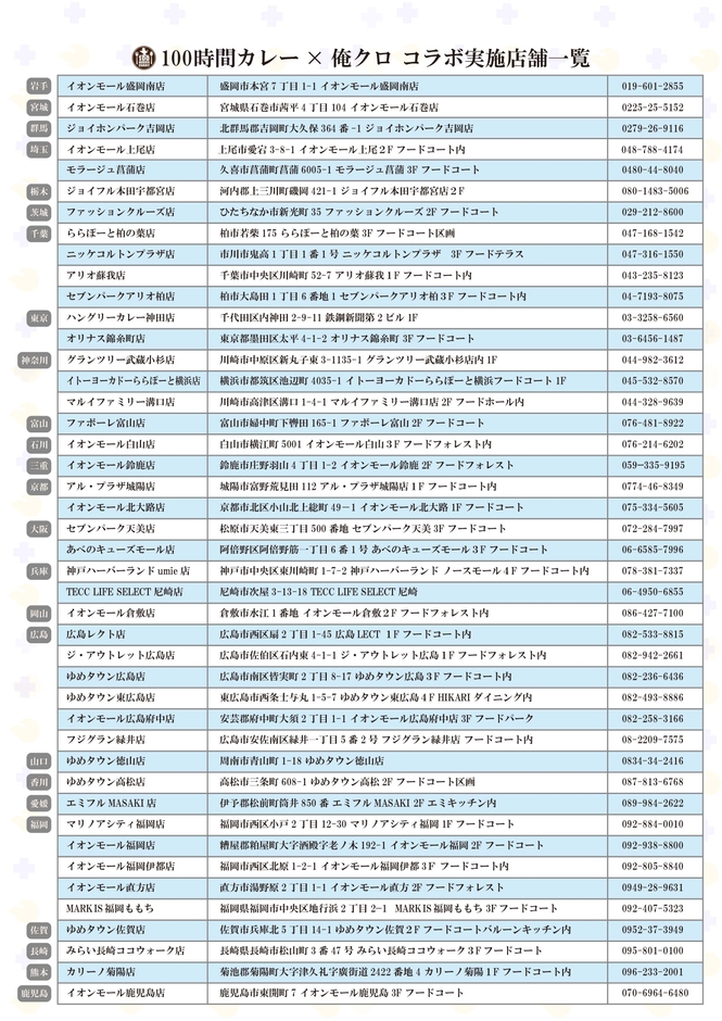 『俺クロ』×『100時間カレー』コラボ決定!! 7月9日(火)から全国の100時間カレーでコラボセットを販売開始!!