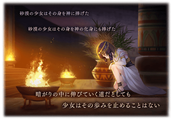 本イベントでは、古代エジプト・プトレマイオス朝でクレオパトラ女王に仕える「エボニー(CV.楠木ともり)」が、未来から訪れた魔法少女たちと数奇な運命を交錯させていくストーリーとともに進行するストーリークエストをプレイできます。