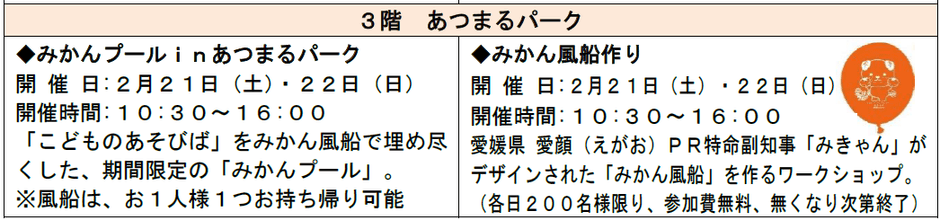 ②愛媛県産柑橘の食べ比べ試食会や水引作り体験、愛媛県 愛顔(えがお)PR特命副知事「みきゃん」のグリーティング、「愛媛みかん教室」の実施など