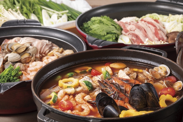 数種類の鍋を一度に味わえる贅沢なひとときは、ご家族やご友人とのお食事にも最適です。