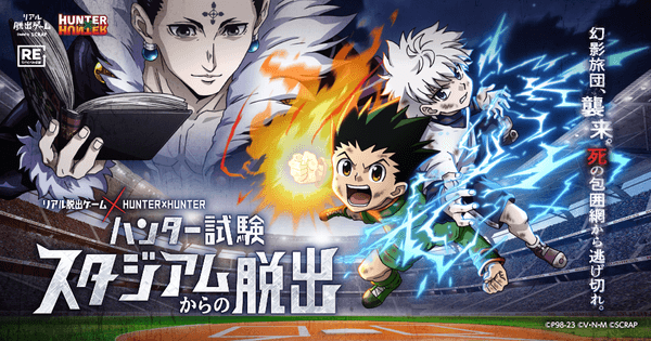 株式会社SCRAP(所在地:東京都渋谷区、代表社員:加藤隆生)は、テレビアニメHUNTER×HUNTERとコラボレーションした、スタジアムを舞台に開催されるリアル脱出ゲーム『ハンター試験スタジアムからの脱出』を、5月3日(水・祝)、4日(木・祝)に東京(明治神宮野球場)、7月1日(土)、2日(日)に福岡(福岡PayPayドーム)にて開催することを発表いたします。
