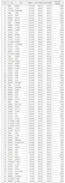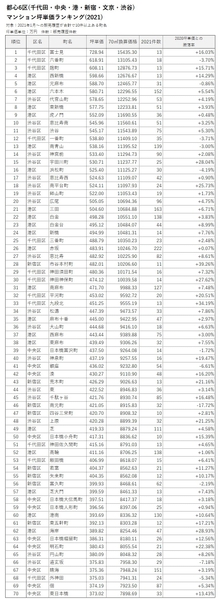 2011年と2021年のマンション坪単価より騰落率を算出。