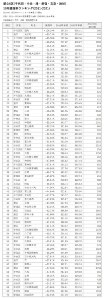 ■新宿区・文京区 10年騰落率ランキング(2011-2021)