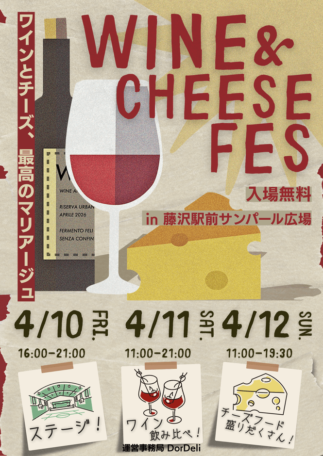 「WINE&CHEESE FESTIVAL藤沢2026」を藤沢駅前 サンパール広場にて開催!