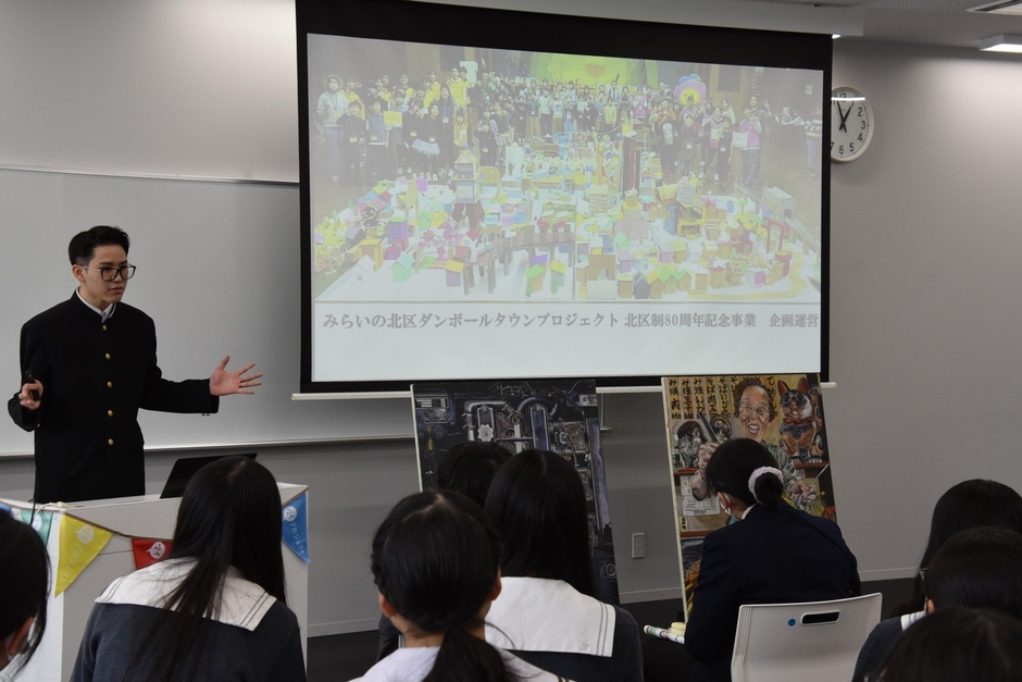 名城大学附属高校からの参加もあり、留学先のイギリスの高齢者施設での経験をもとに大好きなポーカーを認知症予防に役立てるプロジェクトや、自らの体験に向き合い発案した女子高校生が運営する相談窓口サイト開設のプロジェクトなどを発表。全プロジェクトの発表後、各教室から1つずつ「推しプロジェクト」が選ばれ、2教室に分かれて発表と講評が行われました。