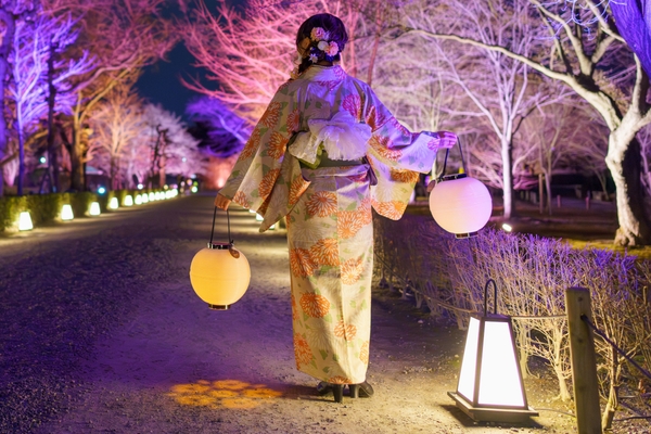 卒業旅行、桜の京都観光に。夜の二条城で桜のライトアップと着物レンタルのセット販売を開始。