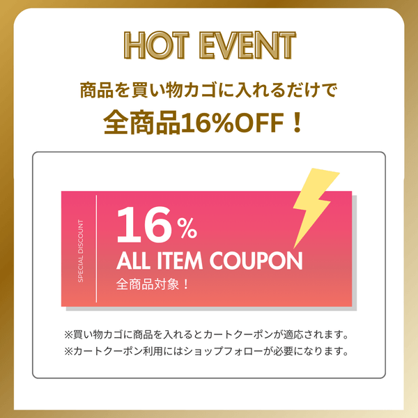 ※ショップフォローをしていただくと16%OFFカートクーポンが使えるようになります。