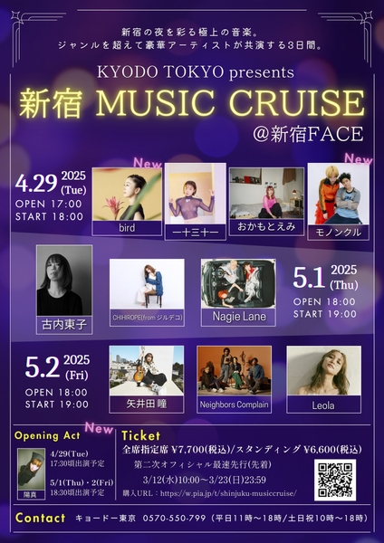 新宿の夜を彩る極上の音楽 ジャンルを超えて豪華アーティストが共演する3日間 「KYODO TOKYO presents 新宿MUSIC CRUISE」出演者最終決定! 4/29公演にbird、モノンクルの出演が追加発表!!