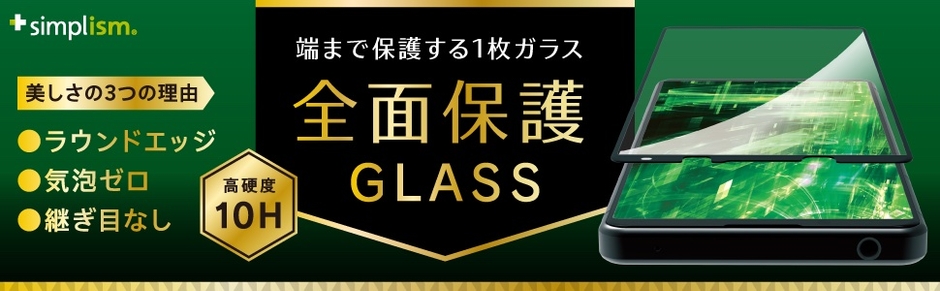端末のラウンドに沿うように成型したフレームと、ガラスとの間に継ぎ目のない究極の一枚ガラスです。端末そのままの美しい見た目を保ちます。