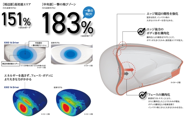 ※2 「ゼクシオ 14」は、ドライバーのヘッドスピードを38m/s で想定しています(当社計測データ)