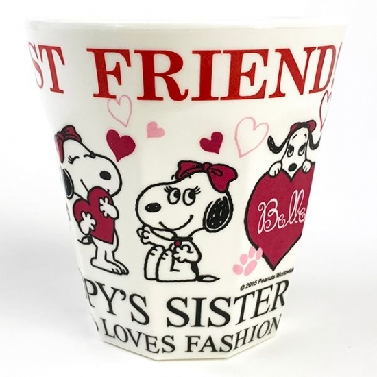 スヌーピーのメラミン製コップは、ほかにもいろいろなデザインをご用意しています。スヌーピーだけでなく、ウッドストックやベルなどのキャラクターデザインもあるので、ショップでもご覧くださいね。