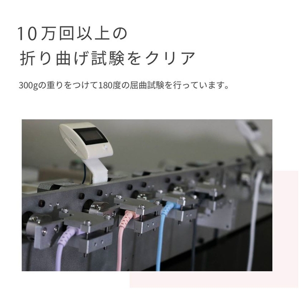 ※300gの重りをつけて180度の屈曲試験を行っています。