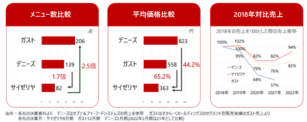 ※デニーズ:2022年2月期 ガスト:2022年12月期 サイゼリヤ:2022年8月期