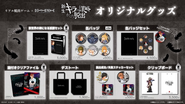 株式会社SCRAP(本社:東京都渋谷区、代表:加藤隆生)は、人気漫画「DEATH NOTE」とコラボレーションした新作リアル脱出ゲーム『新生キラの謀略からの脱出』のオリジナルグッズ情報を発表いたします。