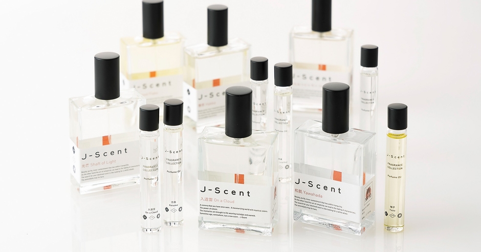 J-Scentでは、川端康成の小説『眠れる美女』をモチーフにした和肌(やわはだ)や、花見酒、ラムネの香りなど、和をテーマにした香りを発売してきました。近年はヨーロッパを主体とした海外のフレグランス市場でも、取扱店舗数を拡大しています。