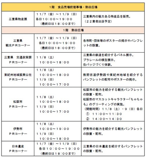 ■実施内容:・三重県産の生鮮食品や加工食品など約100品目の販売