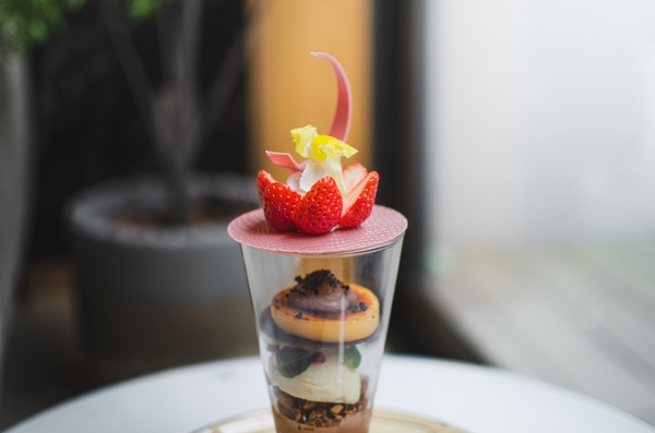 トップには、ルビーチョコレートとジューシーな苺。中には、濃厚なクレームショコラ、爽やかなオレンジコンフィー入りバニラアイスクリーム、そして、香り高いクレームブリュレ オランジュ。様々な素材が重なり合い、口の中でとろけるハーモニーはまさに絶品です。見た目も華やかなチョコレートパフェは、頑張った自分へのご褒美や、大切な人と過ごす特別な時間にぴったり。一口食べれば、心も体も満たされること間違いなしです。