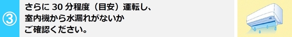 「30分も待っていられない」という場合には、切タイマーを有効活用してください。その場を離れる場合は、万が一の水漏れに備え、エアコンの下には物を置かないようにしましょう。