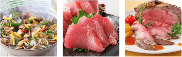 ◆きのさき:ローストビーフやサーロインステーキ、スズキのアクアパッツァや渡り蟹入りのアラ汁など、山の恵み・海の幸を使ったメニューがバランス良く並ぶきのさきのバイキング。