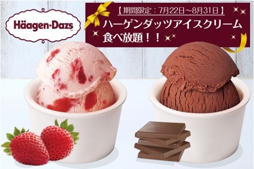 今年の夏はお子様連れのファミリーにお喜びいただけるフェアをご用意いたしました。目玉はなんと言っても「ハーゲンダッツアイスクリーム」の食べ放題です。ストロベリーとスイートチョコレートの2フレーバーをバイキングスタイルでお好きなだけお楽しみいただけます。