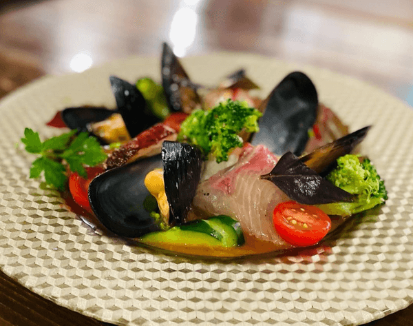 『Hacci 8』の一番のこだわりは素材選び。地元で採れた新鮮野菜や産地直送の活きの良い魚介類、シェフが実際に食べて納得した旨味たっぷりのお肉などを使用しています。