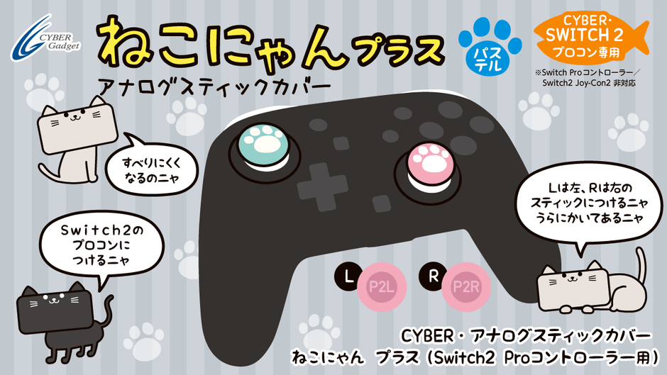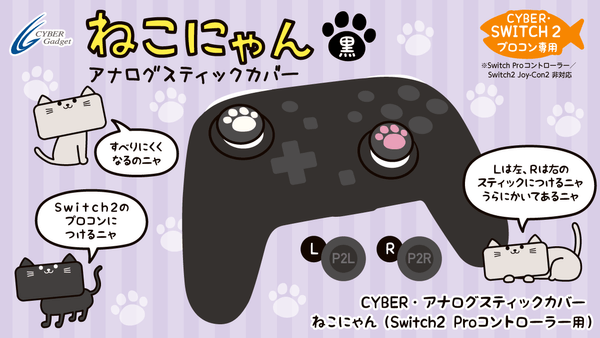 株式会社サイバーガジェット(本社:東京都千代田区)は、『CYBER・アナログスティックカバー ねこにゃん(Switch2 Proコントローラー用)』と『CYBER・アナログスティックカバー ねこにゃん プラス(Switch2 Proコントローラー用)』を、10月16日(木)に発売いたします。