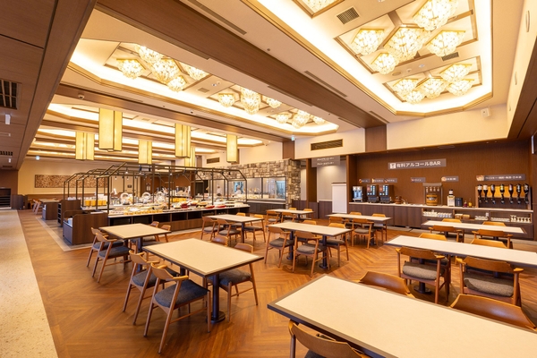 4階フロアのレストランを全面改装。木のぬくもりが感じられ、自然を感じられる食事スペースへ生まれ変わりました。夕朝食もPremiumシリーズへアップグレードし、豪華メニューやご当地グルメを豊富にご用意いたします。