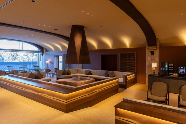 新設したプレミアムラウンジでは、チェックイン時や湯上りなどに自由に利用できる無料のドリンクをご用意しております。ドリンクを片手に暖炉の炎に癒されながら、思い思いの時間をお楽しみください。