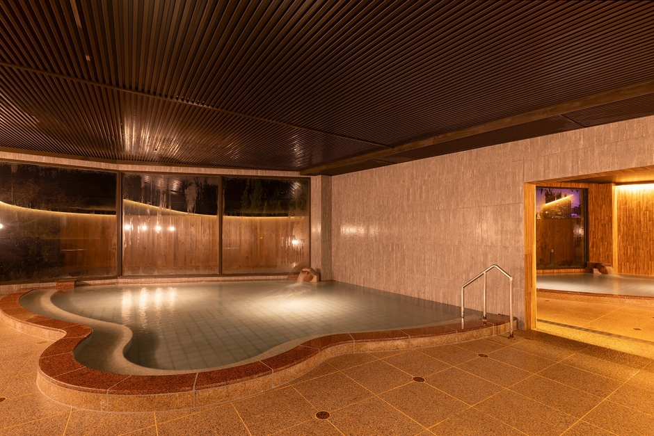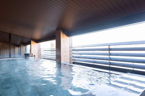 開放感にあふれた空間で温泉を楽しめる大浴場。ちょっとした贅沢感を楽しめるメニューやその土地ならではの食材を味わえるバイキング。
