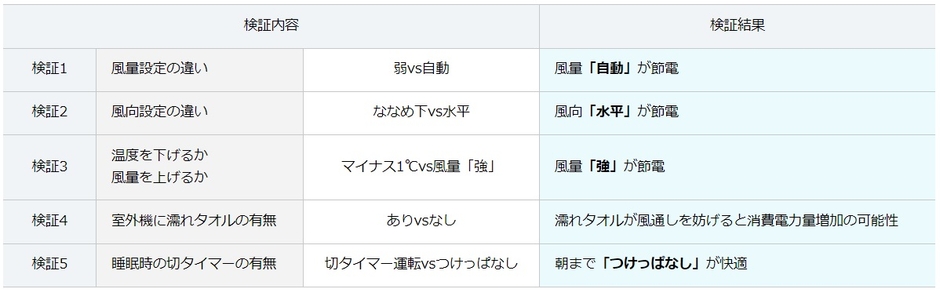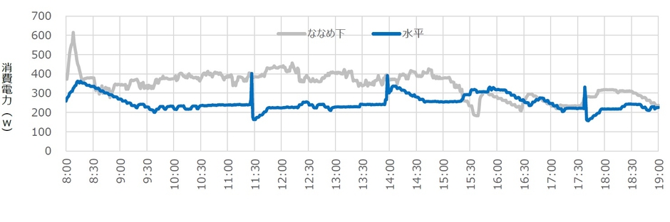 人がいる場所に冷たい風を直接送る「ななめ下」の方が節電につながりそうに思えますが、今回の実験では、風向「水平」の方が節電につながる結果となりました。