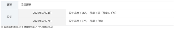 検証3のエアコン設定