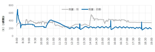 《検証結果》 「風量:自動」の方が節電に!