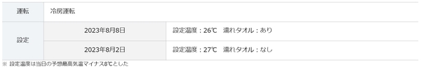 検証2のエアコン設定