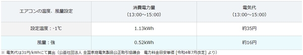 【検証3】設定温度を「1℃下げる」のと、風量設定を「強」にするのとでは、どちらが節電?⇒「風量:強」の方が節電に!