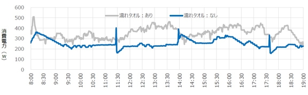 《検証結果》濡れタオルが風通しを妨げると消費電力量増加の可能性あり