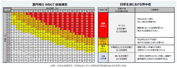 室内では暑さ指数(WBGT)が25℃以上で熱中症「警戒」とされています。